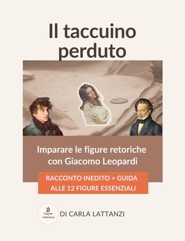 Ho pubblicato due Ebook in PDF: il racconto "Il taccuino perduto: imparare le figure retoriche con Giacomo Leopardi" e la "Guida alle figure retoriche". Li trovi nel mio negozio Shopify.